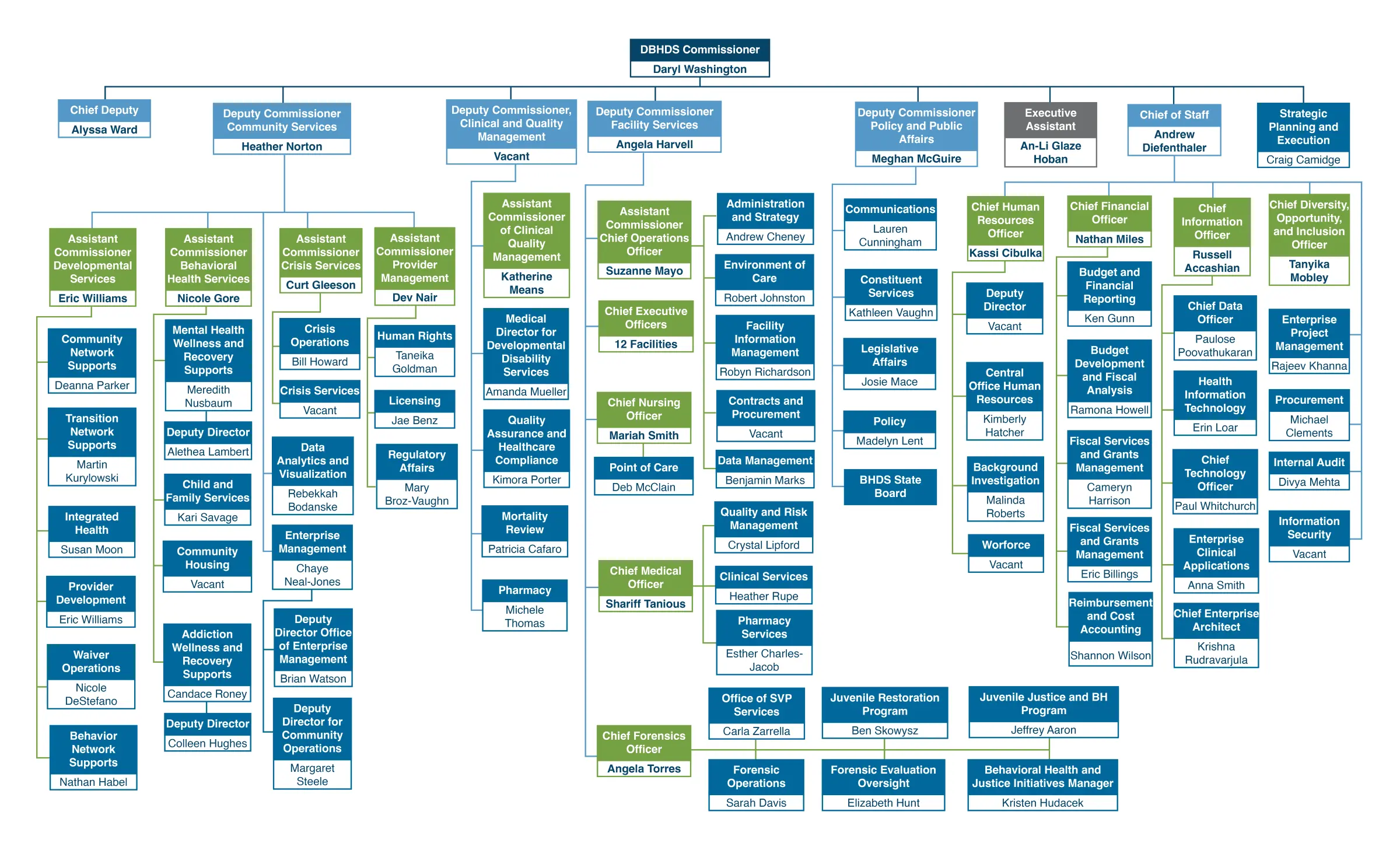 Noong Enero 2026, si Daryl Washington ay hinirang ni Gobernador Abigail Spanberger bilang Komisyoner ng Virginia Department of Behavioral Health and Developmental Services (DBHDS). Ang DBHDS ay isang ahensya ng estado na nagpapatakbo 12 mga ospital at sentro ng estado na may higit sa 5,600 empleyado at nangangasiwa ng isang $2 bilyong sistema na taun-taon ay nagsisilbi sa higit sa 200,000 mga taga-Virginia at mga pamilyang nakikipagpunyagi sa mga karamdaman sa kalusugan ng pag-uugali at mga kapansanan sa pag-unlad.
